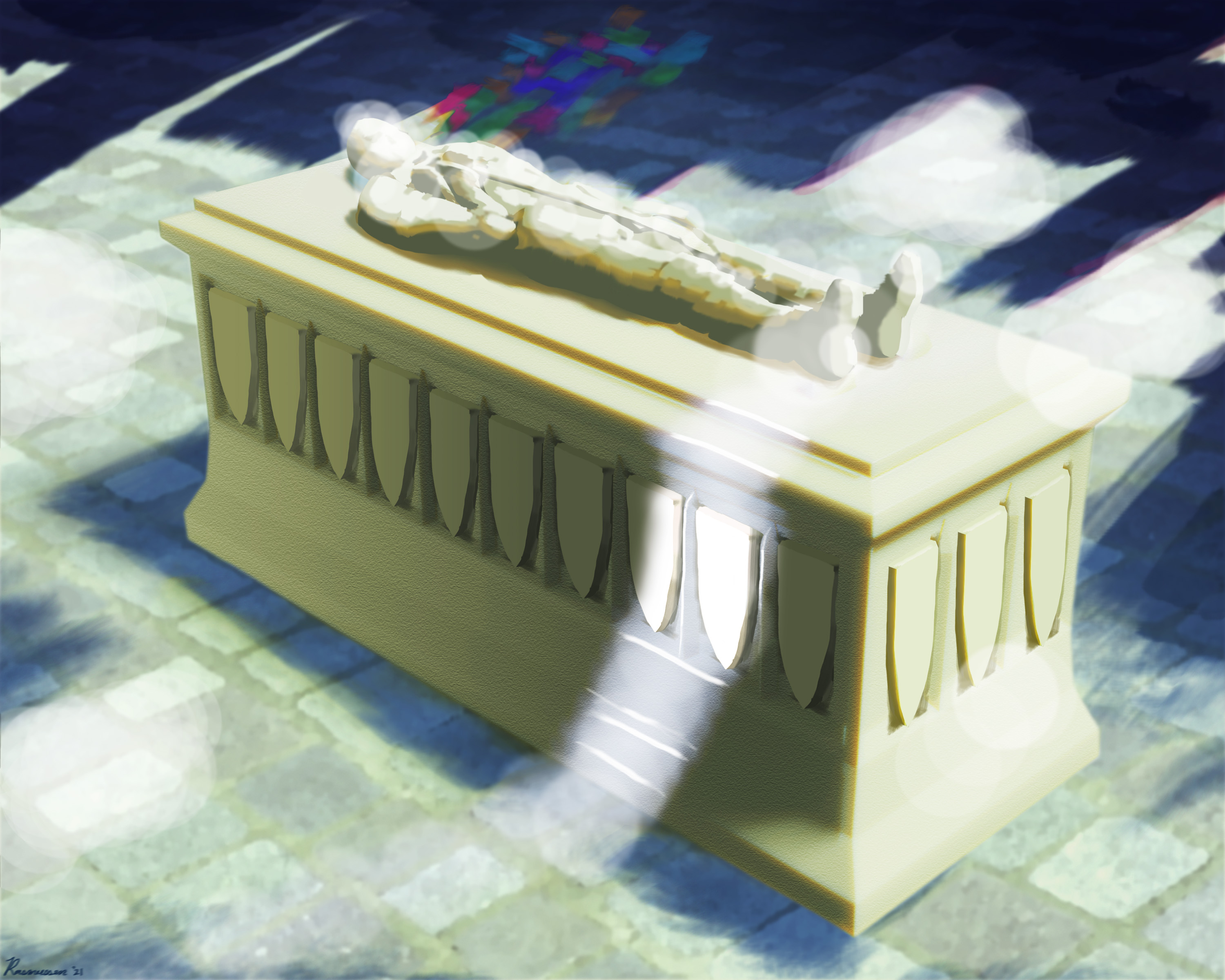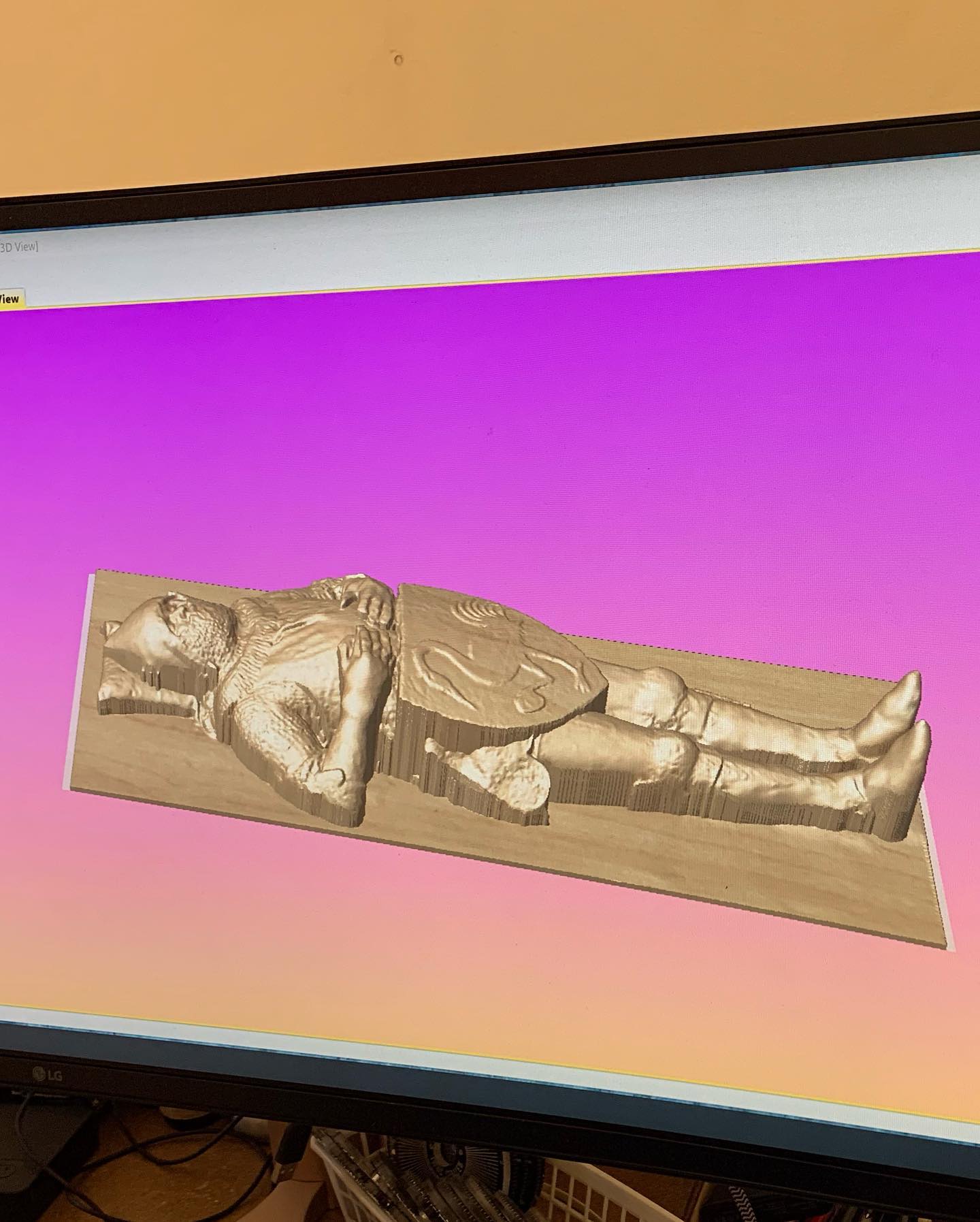 We partnered with the university of Maine’s Innovative Media Research and Commercialization lab to create a life sized sculpted Tomb Effigy! Based off of effigy designs of the late 14th and 15th centuries, and using a 3D scan of our lead historical interpreter.
